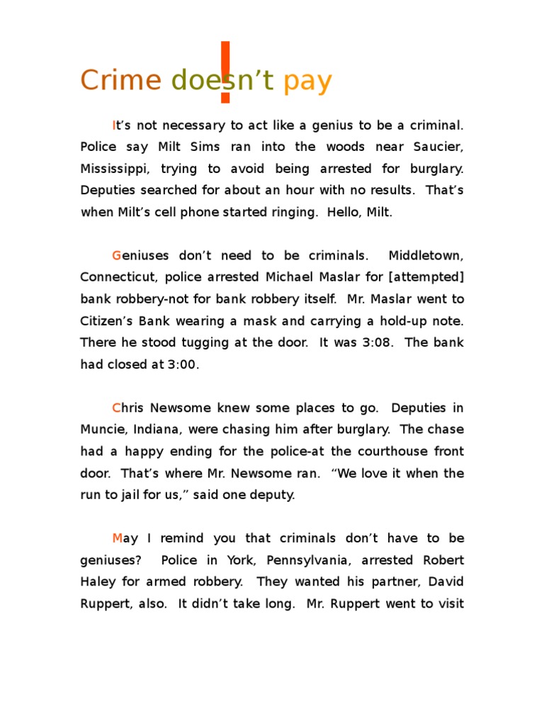 It makes logical sense but as humans we need to recognize To be a Crime doesnt pay essay Scene Investigator, first you would have to get your high school deploma. After done with high school, you'de need to get a collage degree, crime doesnt pay essay.